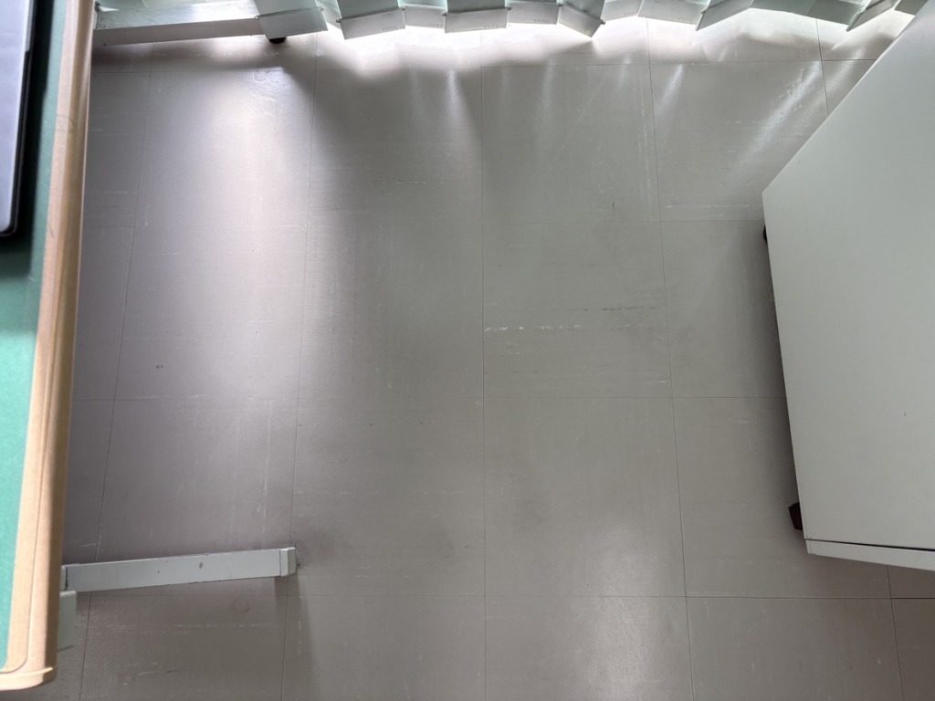 このような施設では、見た目の清潔感のためだけでなく、床表面の古いワックス層や汚れの中に潜む雑菌も除去し、衛生的な状態にすることが必須の課題でした。