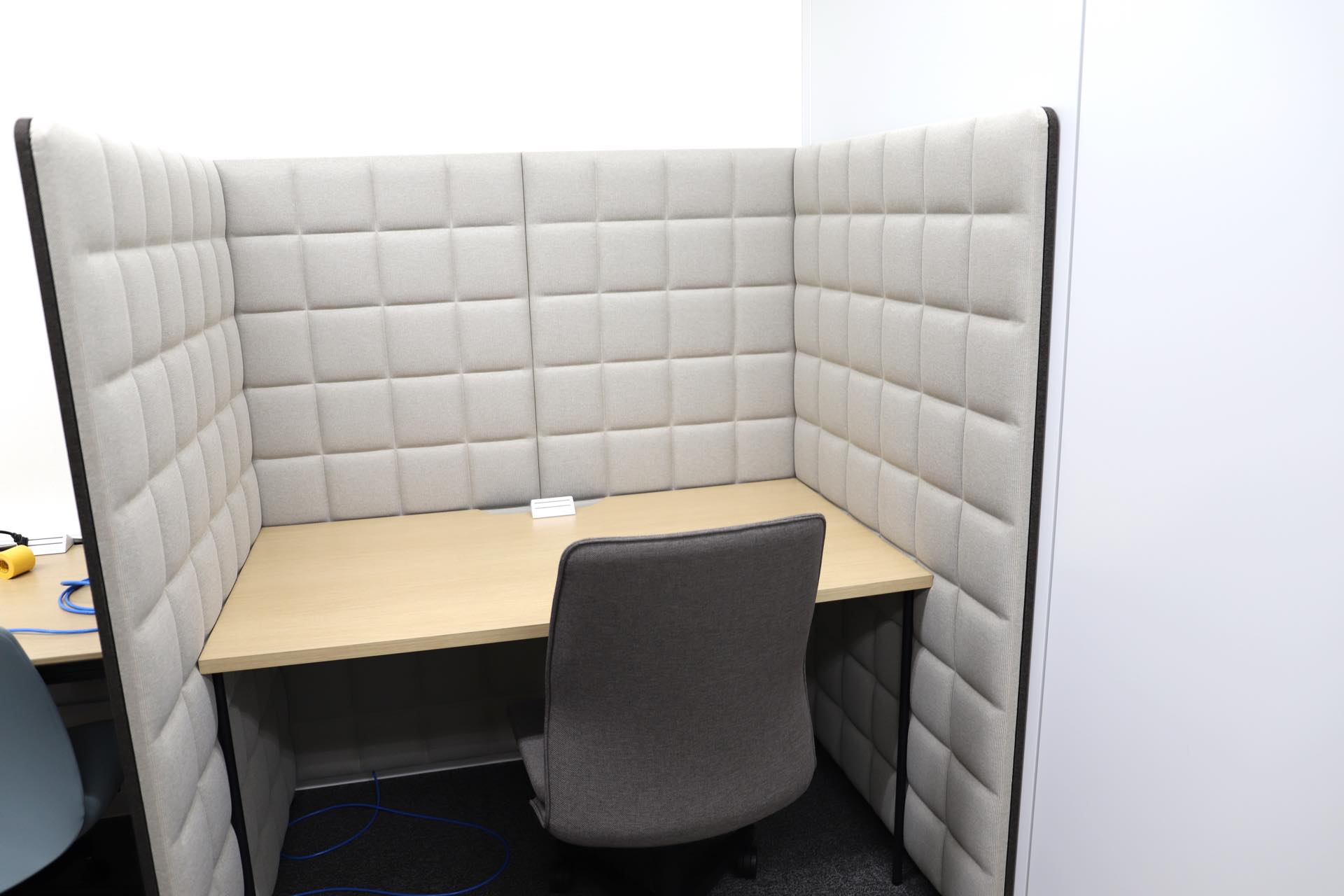 また、単にオフィスを綺麗にするだけでなく、リニューアルを機に社員の働き方を改善したいという意図がありました。以前は、ただ机が並んでいるだけの環境だったため、周囲の話す声が入ってきやすく、集中しにくいという問題があり、特にコロナ禍以降増加しウェブ会議への対応を踏まえ、社員がより集中しやすい環境を整えることに重点を置きました。
