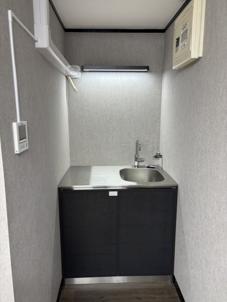写真左側に移っている据え付けタイプの棚、コンセント器具等も