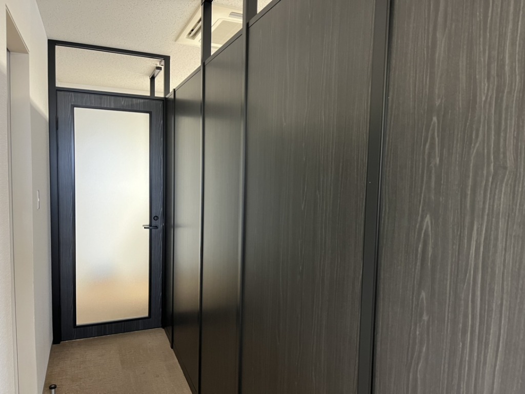 工事をご依頼いただいたきっかけは、人材派遣業を行うにあたり、執務スペースと面談スペースを分けなければいけないというご相談からのスタートでした。