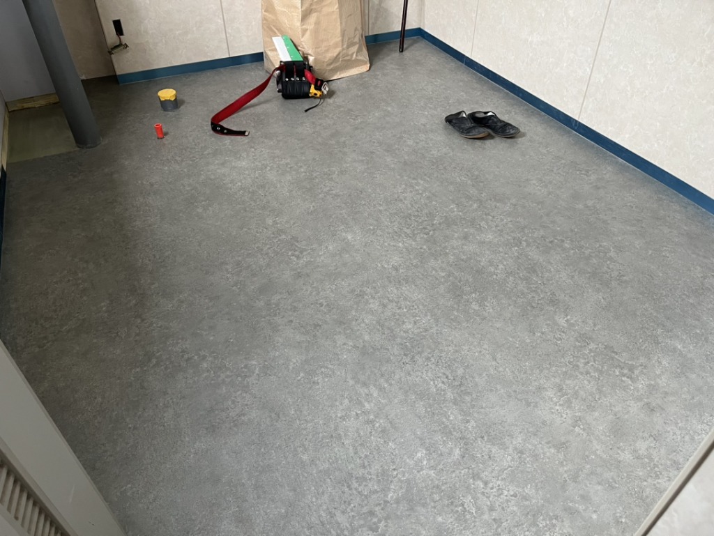 水を流して掃除をすることは無いという事だったため、滑りにくいグレーの落ち着いた色味に。