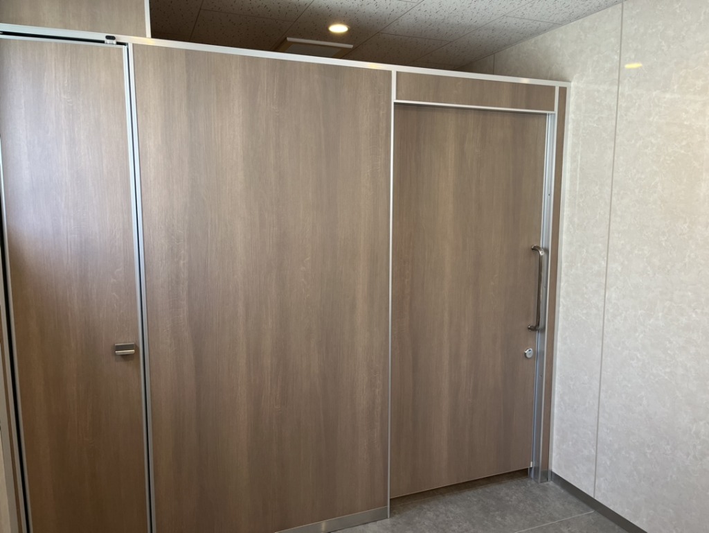 トイレブースは明るく温かみのある木目柄で選んでいただきました。